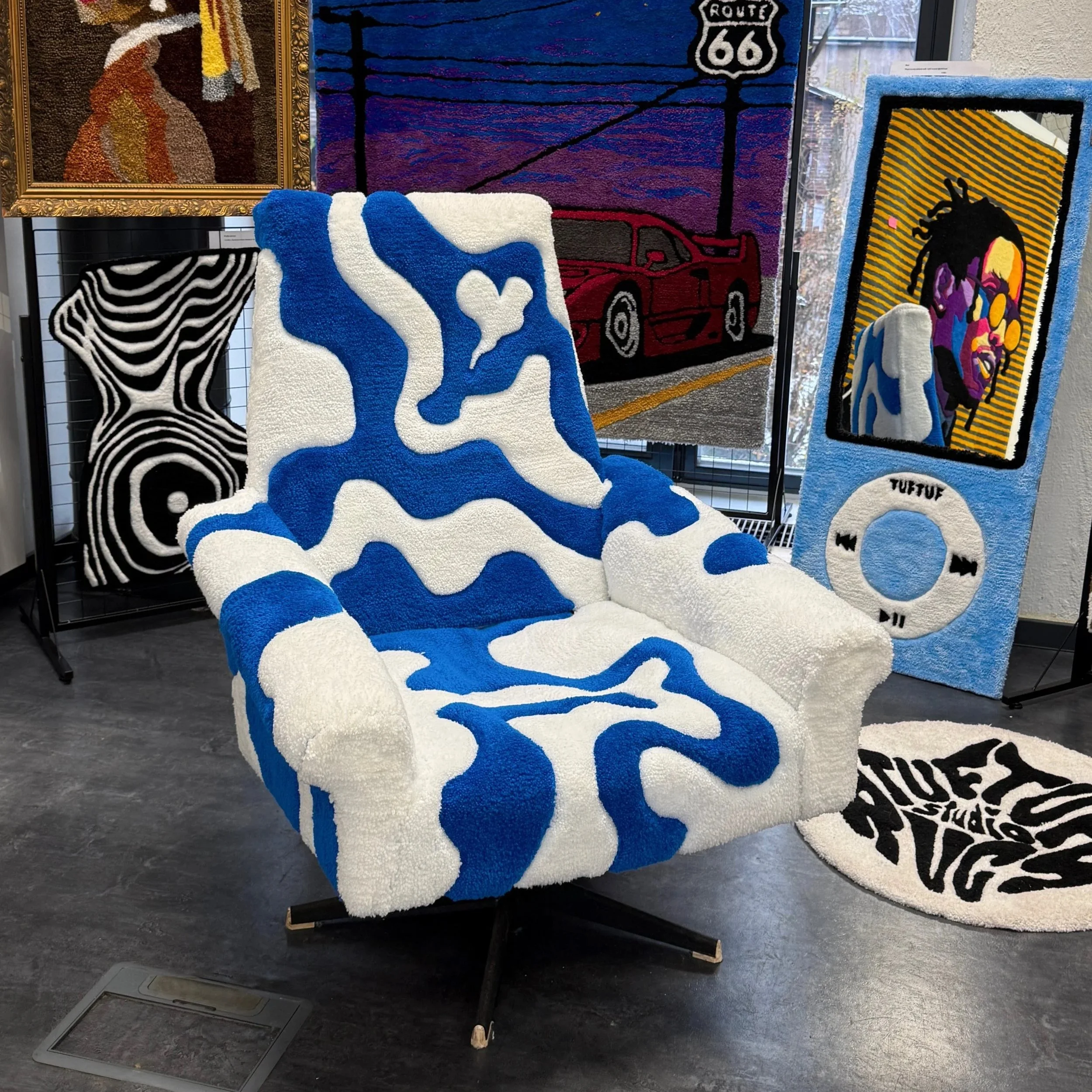 Ročník ’78. Původní držení těla si nechalo, ale kabát jsem mu dal nový. Vintage křeslo, které dostalo nový život. Je k prodeji či pronájmu.